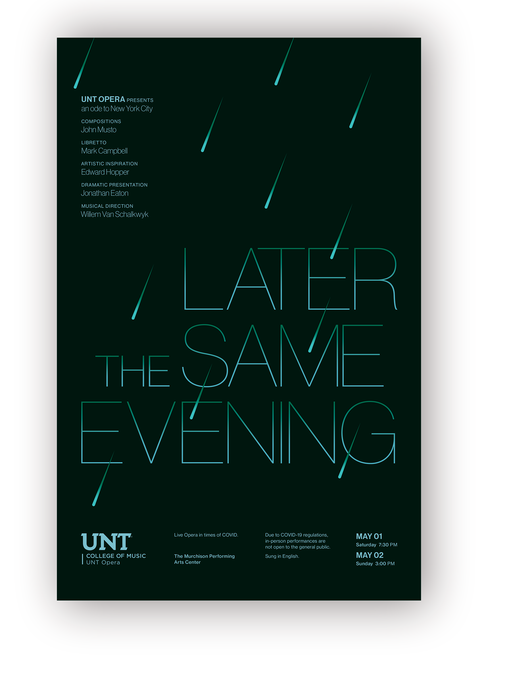 a digital media campaign for unt opera’s spring production, later the same evening.